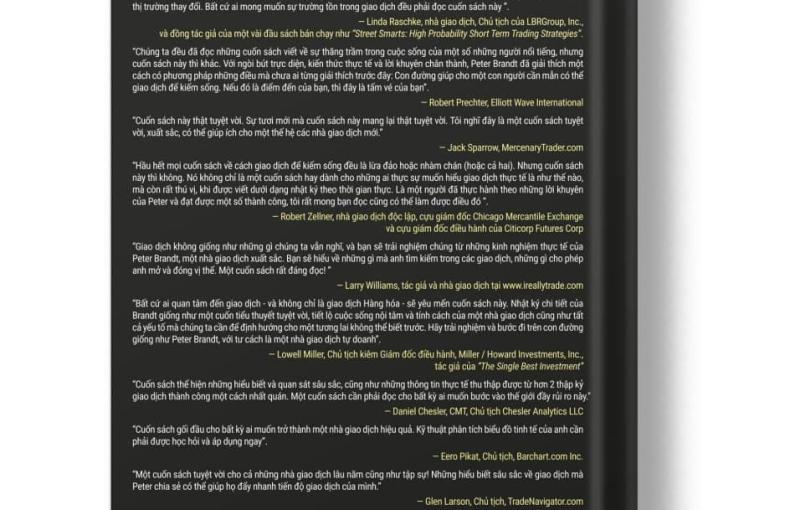 Cuốn sách là bản nhật ký giao dịch thực tế không biên tập của Peter Brandt, trader với gần 50 năm kinh nghiệm, đạt hiệu suất trung bình ~68%/năm. Nội dung gồm 21 tuần giao dịch liên tiếp, không chọn lọc kết quả đẹp mà thể hiện mọi diễn biến theo thời gian thực, giúp người đọc nhìn rõ quy trình và mindset trader chuyên nghiệp